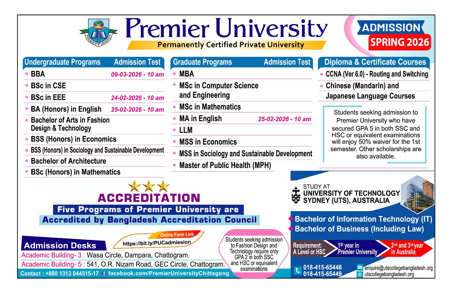 Admission Circular Spring 2026